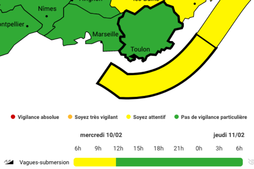 Le département du Var est placé en vigilance jaune pour risque de "vagues-submersion", depuis ce matin 4h00 et jusqu'à 12H.