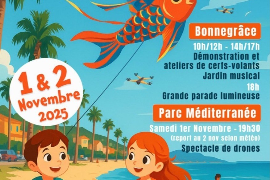 Au programme : ateliers de cerfs-volants pour les enfants, envols géants, et le jardin musical d’Étienne Favre, un univers poétique où chacun pourra s’amuser avec d’étonnantes machines sonores ! En soirée, place à la magie avec la grande parade lumineuse, suivie d’un spectacle féerique de 300 drones au Parc Méditerranée !