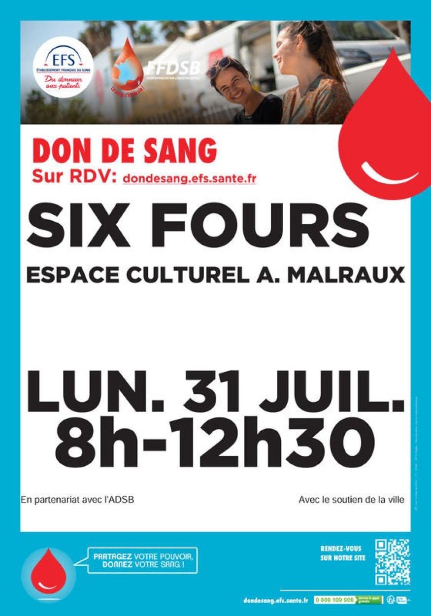 Collecte de sang à Six-Fours-les-Plages ce 31 juillet