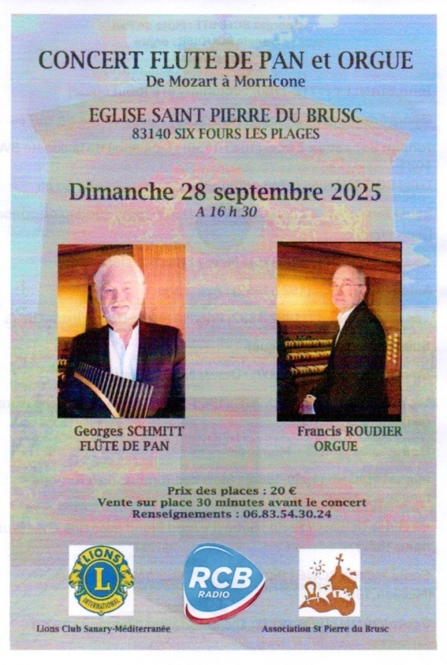 CONCERT flûte de pan et orgue le 28 septembre à Six fours les plages à 16h30