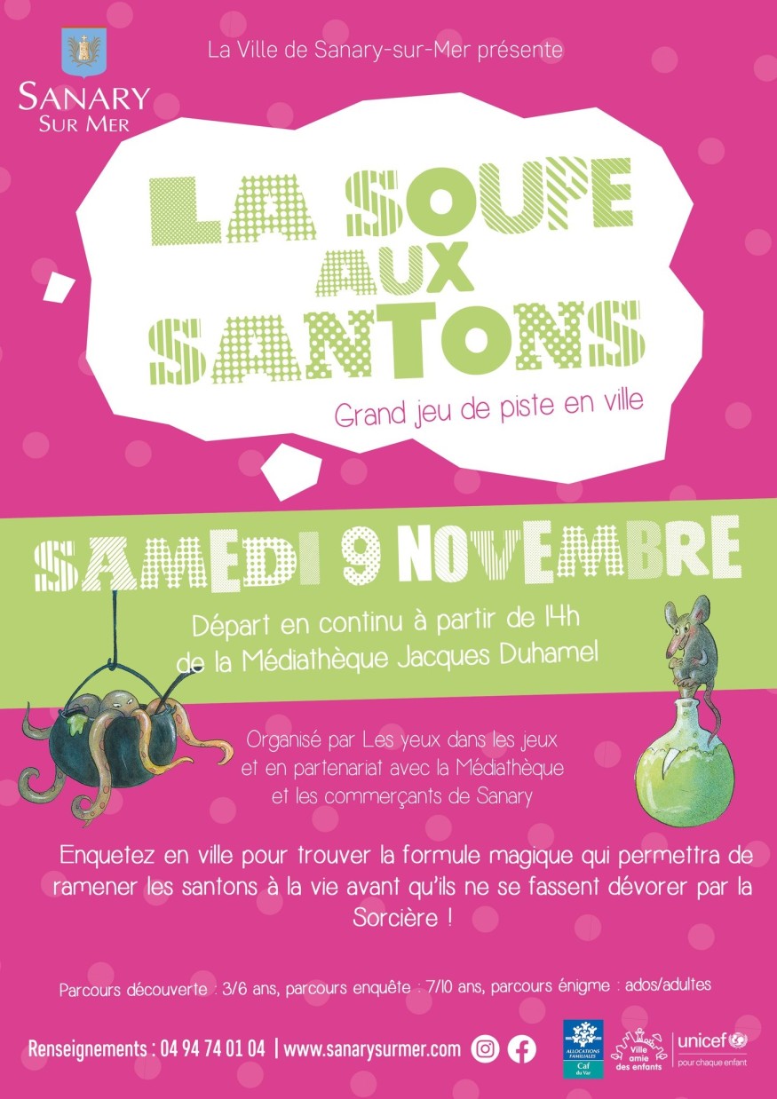 Le samedi 9 novembre à partir de 14h, venez découvrir en famille La soupe aux santons, un grand jeu d'énigme en ville au départ de la médiathèque ! ![]()