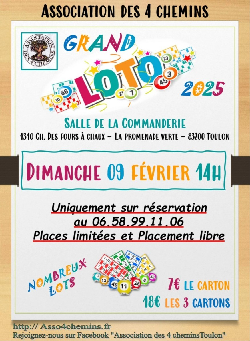 Grand Loto 2025 de l'Association des 4 Chemins à Toulon ce 9 fevrier