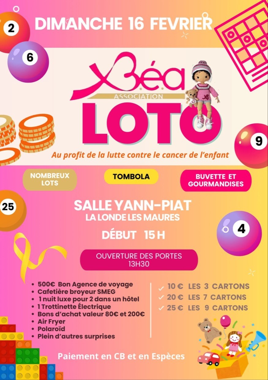 Loto de l'Association B.E.A à La Londe-les-Maures ce dimanche 16 fevrier