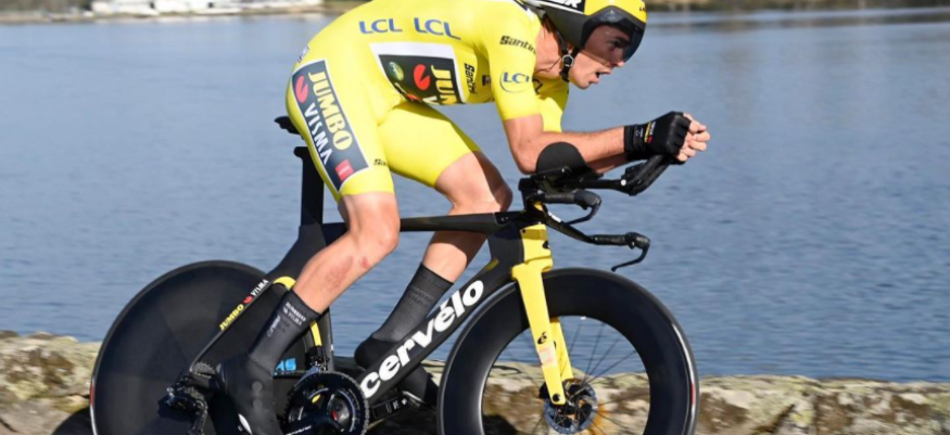 Jusqu'à maintenant sur les épaules de Christophe Laporte, c'est Wout Van Aert, son coéquipier chez Jumbo Visma, qui en a hérité. Le Belge s'est imposé lors de l'épreuve du contre-la-montre lors de la quatrième étape mercredi. Christophe Laporte, lui, a été le onzième à franchir la ligne d'arrivée.